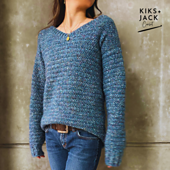 Your First Basic V Neck Crochet Sweater is a long sleeved sweater that is great for the colder months. It features a V neck design with ribbing on the bottom and on the sleeves. It also features ribbing around the V neck. This sweater is designed to hit at the hips, however it can be customized easily as a crop.