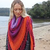 A beautiful crochet triangle shawl, with striking color transitions that will add a touch of bohemian flair to any outfit.