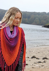 The pattern is easy and straightforward, ideal for confident beginners. You’ll need around 1000m of fingering weight yarn plus a little extra for the fringe.
