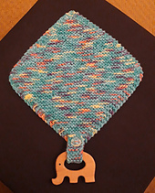 Knitted corner to corner, then a baby teether is added.