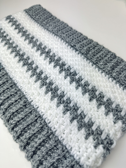 The attractive Interlocking Row Stitch is the star of this pattern, making it perfect for a variety of skill levels. The simplicity of this 2-row repeat design means it’s a breeze to stitch together, while still boasting high-fashion impact.