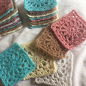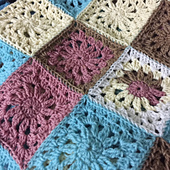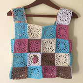 This top is made with 37 granny squares that measure roughly between 3.5” and 4” in size.