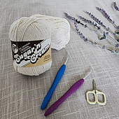 Lily Sugar n' Cream was used for the samples shown in the photos. You'll need only one ball of yarn!