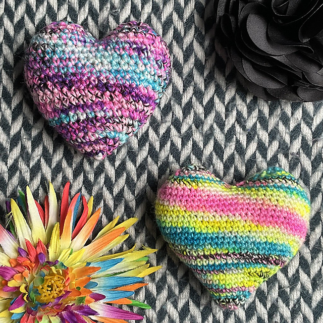 Hook up a cute little Plushy Heart using your sock weight or DK scraps. Each heart takes less than 20gr of yarn and works up in only a few hours. Make one for everyone you love. Including yourself.