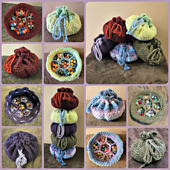 This bag was originally inspired by Laura Bailey’s Dice bags. However, not everyone’s dice collection can compete with hers. With that in mind, I have created this smaller version. This bag measures approximately 8” wide and 5” tall and fits about 70-80 dice (10-12 sets).