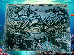 - **two** different techniques overlay mosaic and interlocking filet crochet)