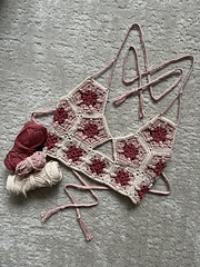 This pattern allows you to create various different styles of the top: Corset style braided back & stretchy ribbed back