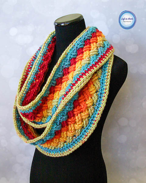 A free infinity scarf crochet pattern perfect for celebrating St. Patrick's Day but spectacular enough to wear for any occasion! Use on skein of Caron Cakes yarn or equivalent worsted weight yarn of your choice to make this vivid accessory.