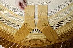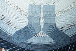 *Choose three colors of yarn from light to dark and fade them together throughout the textured stitches of this top-down sock. These socks were inspired by my Glittering Snowscape Shawl, a delightful collage of eyelets and textured knit purl patterns. Life in the Long Grass’ High Twist Sock base produces crisp and lively stitches as you work some simple lace, ribbing, a fun Pillar Stitch technique, and several other simple stitch patterns. The heel features a garter stitch heel flap followed by gusset shaping. Instructions include notes to help customize your foot length. Treat your toes to this colorful collage of stitches!*