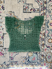 This lace blouse calls for any lace weight yarn. I am using the Hobbii Diablo yarn in Thyme.