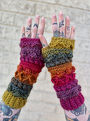 The Fable Gloves feature loads of great texture to make your yarn pop! It is worked from the band up, so you can be sure to get the perfect fit right from the start. It works up great with self striping yarn for effortless colorwork. It pairs great with the Fable Pixie Hat and Fable Beanie!