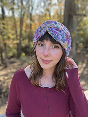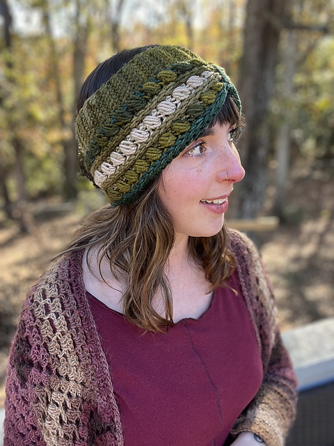 The Gumdrop Headband features squishy wrapped hdc stitches sandwiched between simple textured stitches. It is a quick make with a beautiful result! This design is a mix between a headband and a messy bun beanie. It can be worn upside down as well to switch up the look!