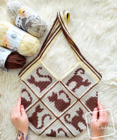 This pattern is worked in 13 individually created squares (in 3 unique designs) that are arranged and seamed to create the body of the bag. A pair of 2-color straps finish the design in a simple but fashionable manner. Being a cat lady will be as fun as it sounds with this exciting and customizable crochet bag.