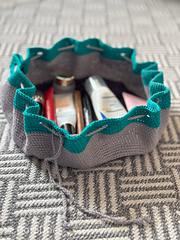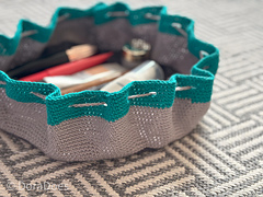 Flat out is a simple circular crochet bag with a drawstring closure. Great for makeup, toiletries, dice or other trinkets.
