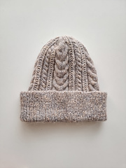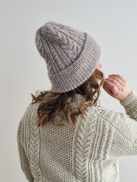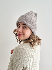 The Vivienne beanie has a long ribbed brim and an allover cable pattern. The cable pattern matches my popular Vivienne tee and pullover patterns.