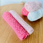The pattern is written for 2 sizes - Washcloth and Tea Towel - but also includes instructions for adjusting the stitch pattern to make a custom size.