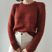 The Cognac Sweater is a versatile knitting pattern with a top-down construction, German short row shaping, and contiguous set-in sleeves. This basic stockinette sweater can also be worn as a blouse and features half-twisted rib or i-cord details for the collar, as well as body and sleeves. It also has a perfected rounded crew neck.