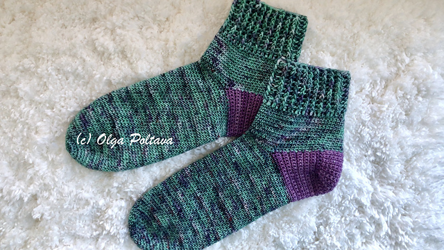 This is a pattern for women's crochet socks made with fine sock yarn (100% Superwash Merino wool or Superwash Merino blend yarn).
