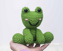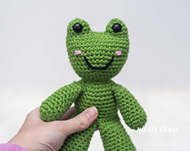 Fergus the Frog is a really fun, completely no-sew pattern! The head and body are worked as one piece, with the arms and legs being crocheted in as you work the body.