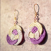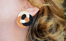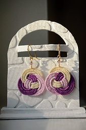 These earrings consist of 3 crochet open circles, assembled in a way such that no two of the rings are interlocking with each other, but the 3 together cannot be separated. These are called Borromean rings. Worked in 3 contrasting colors, these are great for showing team spirit, or just showcasing your favorite hues.