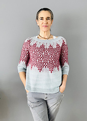 Der Renaissance Sweater ist ein top down gestrickter Pullover mit schmalen Ärmeln und lockerem Sitz am Körper.