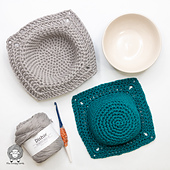 We Crochet Dishie (100% Cotton Yarn, Worsted Weight (4), 190yds/174m, 100g/3.5oz), 1 skein in preferred color. I used Kenai and Silver for my samples (approx. 74 g / 140 yds)