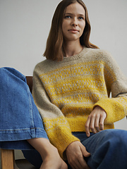 **JOHANNE_LOOP_SWEATER** draws inspiration from the ‘Alstrøje’. A sweater in nuanced knitting designed in the 1960s or 1970s by Åse Lund Jensen, the founder of Isager. The interpretation is based on the original pattern repeat, and the shift in nuances is emphasized as the colours graduate from the top down over the sweater via the pattern repeat that extends to the bottom.