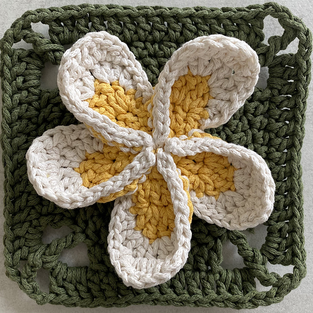 Frangipani Flourish: Embrace the intricate details of frangipani blooms captured in this delightful granny square pattern.