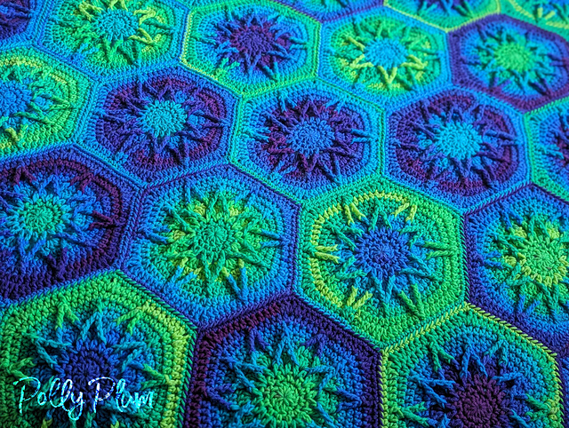 This starry blanket is ready to twinkle and glow for you! Made from hexagon motifs and self-striping yarn, you'll never get tired of looking at this one.