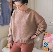 Janni se tricote en rond, d'une pièce, de haut en bas. L'encolure est façonnées par des rangs raccourcis puis des jeux d'augmentations forment les épaules, le haut du corps et des manches. Ensuite les mailles des manches sont mises en attente pour être tricotées en rond par la suite. Le bas du corps est tricoté en rond. A la fin et pour ajouter de la structure et de la solidité au vêtement, les mailles du col sont relevées et tricotées en rond.