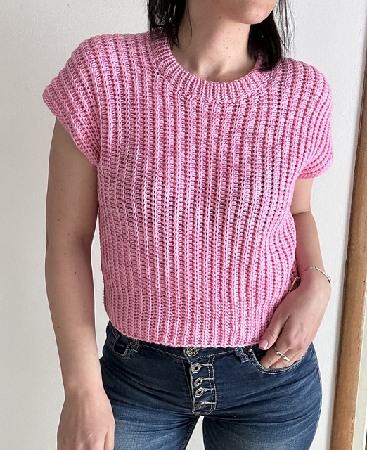 Il gilet Aurora si lavora con righe di andata e ritorno da lato a lato. Il dietro e il davanti vengono lavorati separatamente, vengono rifiniti poi cuciti insieme sulle spalline con una cucitura invisibile ad ago. Il girocollo è rifinito con un bordo a coste 1/1 lavorato all’uncinetto.