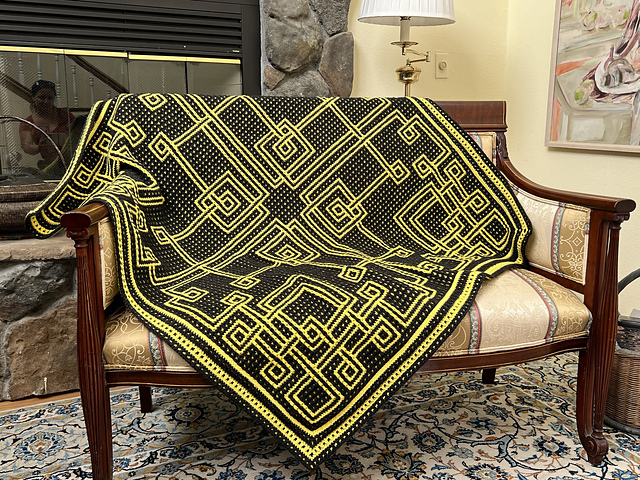 This design is made in overlay mosaic crochet technique,