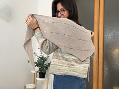 An *Italian Spring Shawlette* is a simple shallow triangular shawl, featuring garter stitch and eyelets. Easy to knit, easy to wear!