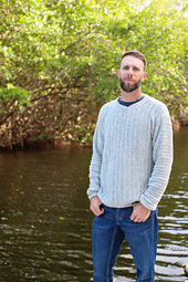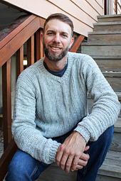 The Men's Maxwell Sweater Crochet Pattern is a lightweight v-neck sweater that is worked in two panels sewn together with sleeves and trim added at the end.