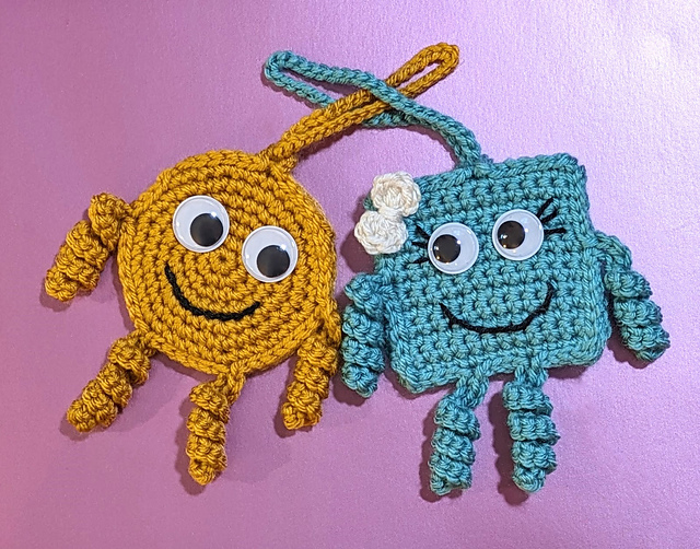 Add a face with a little thin cotton yarn/thread, examples shown used 18 or 20mm googly eyes - crocheted/embroidered eyes recommended if likely to be handled by a young child.