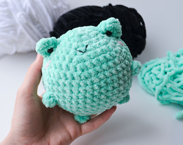 This is a free short crochet pattern of the fat cute plush amigurumi loaf chubby Frog from bulky yarn. It contains 3 pages in 1 file.