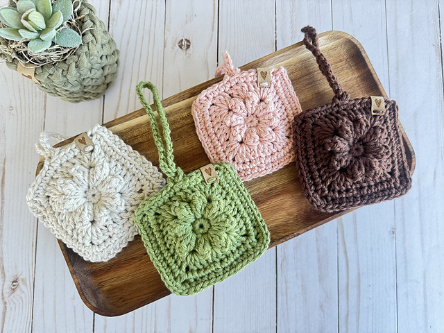 This fun Boho Chic Airpod pouch is made with Hobby Lobby I Love this Cotton. It is a worsted weight cotton, but it is a soft cotton. You could use Lily's Sugar 'n Cream, but it would probably be bigger in size.