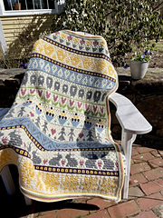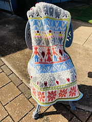 Pattern is written in English (US Terms). It has a Spanish, German and Dutch translation, and a left-handed version too. It has step-by-step written instructions, a mosaic tutorial and a border tutorial with photos for every row and steps, charts, and lots of pictures to guide you through all the CAL parts.