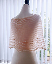 The Snowberry Shawl is a versatile shoulder accessory suitable for any occasion. It is knitted flat from the top down using a basic stockinette stitch and a variation of the popular feather and fan stitch pattern. The shawl is knitted to sit comfortably on the wearer's shoulders using strategically placed sets of increases. The front closure is knitted in two pieces from the picked up stitches along the short sides of the shawl.