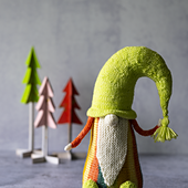 **Gnimble is a fun gnome designed to showcase bold yarns like self-striping and variegated colourways.**