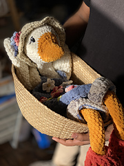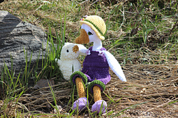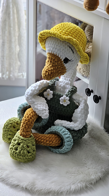1. Big Twist Posh -head/body/hat/crocs/ Premier Chunky Chenille for beak/legs,overalls. Using 6.5mm hook -tight tension