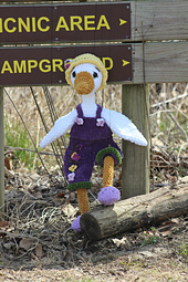 This pattern is almost a no sew, the only item you sew on are the straps on the back of the overalls and the tail. And flowers onto the overalls and hat.
