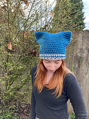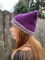 This fun cat-ear beanie is worked from the top down and in the round, finished with fun color and texture details! Additional color stripes can be added if desired for a colorful custom look. The length can be adjusted as needed, but this hat style should fit with no slouch in order for the ears to stand up properly.