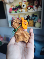 Tapioca the Capybara is here! Tapioca is a fashionable little creature! The recipe is completely no sew and she comes with three hat choices for you to customize your friend. Tapioca makes a great desk buddy or even a cute keychain. Come be part if the Tapioca Troupe!