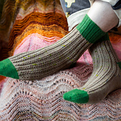 *These beautiful top-down socks celebrate the mesmerizing dip stitch technique. Select one main color for the dip stitch leg and foot along with a coordinating contrast color pop for the cuff, heel, and toe. The instructions include notes to help you customize the length of the leg and foot. Choose between five sizes and cast on these elegantly ribbed socks.*