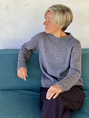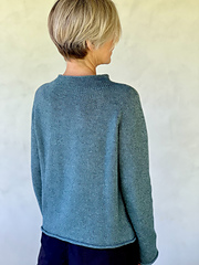 This sweater is knit seamlessly from the top down in the round, starting with the collar. The yoke shaping is neither raglan nor round; it’s a bit of both!