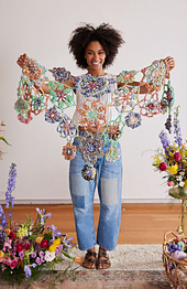 The Frolic Crochet Flower Shawl is a simple crochet pattern designed to be a patchwork of different flower shapes in a mix of Waterfall and Wildflower yarns! After crocheting all of the flowers, assemble them into a shawl and/or scarf as shown, or stitch them together in any shape or way that resonates with and inspires you.