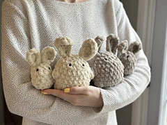 FINISHED SIZE: Larger bunny-approx. 6”/15.2cm, Smaller bunny-approx. 4.5”/11.4cm tall.