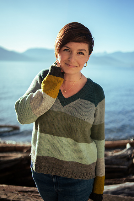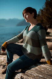 We're excited to share a bit of seaside charm with this DK, v-neck raglan sweater, Port Townsend. Whether you're in the mood for short sleeves for those sunny days or longer ones for the breezy evenings, this pattern is all about versatility and comfort. It's a fun and straightforward knit that we're sure you'll love to make and wear. With its clean lines and customizable stripes, it nods subtly to coastal inspirations, making it a versatile addition to your handknit wardrobe.