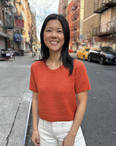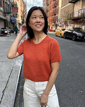 The **Skyline Tee** is a top-down saddle shoulder construction with ribbing detail that starts at the neckline and flows seamlessly down the sleeves to the cuffs. Inspired by alluring city skylines; this cropped tee is ready to become your new wardrobe essential. The [Skyline Pullover][1] is also available!
